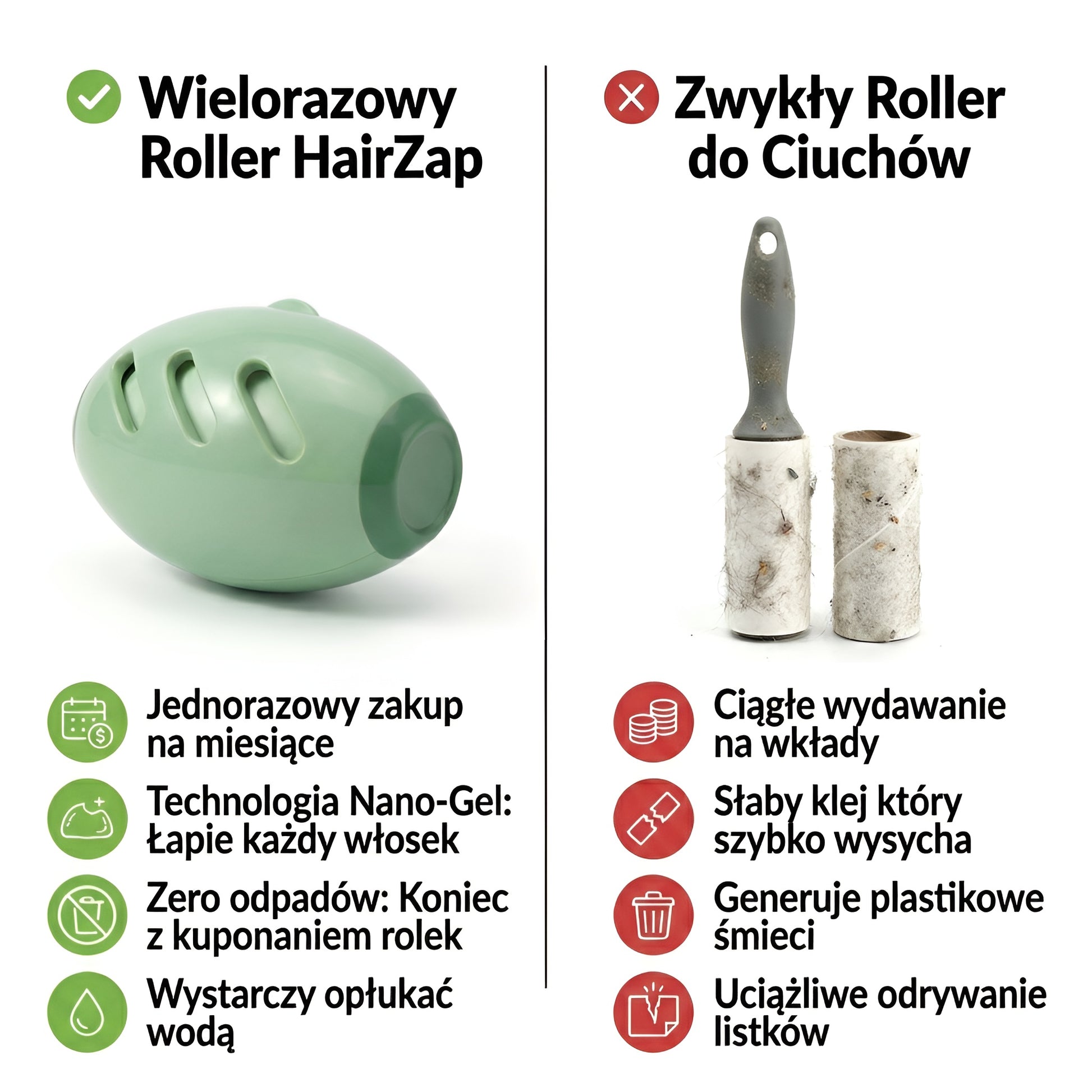 Dzięki unikalnej budowie i nowoczesnym materiałom, HairZap ochroni Cię przed każdym włosem. Widzisz kłaczki na swoim ficie? Wyjmujesz, przejeżdżasz i włosy magicznie znikają, a Ty znów czujesz się jak milion dolarów!