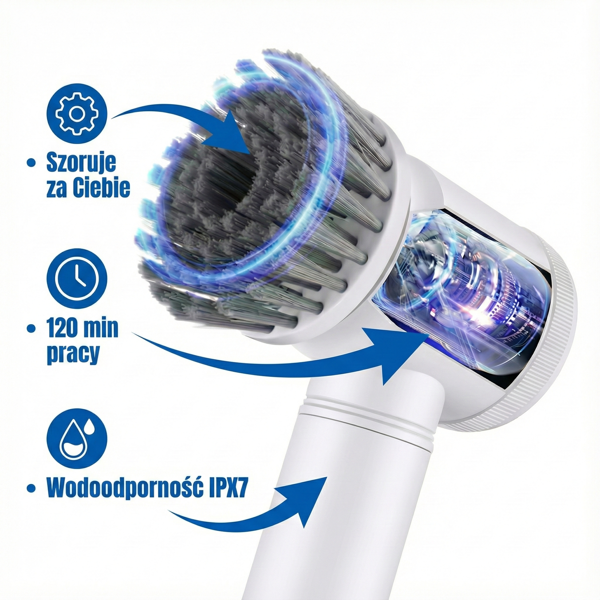 Jeden Turbo Scrub, dziesiątki zastosowań. Wymień końcówkę w sekundę i wyczyść wszystko, co do tej pory wymagało siły: