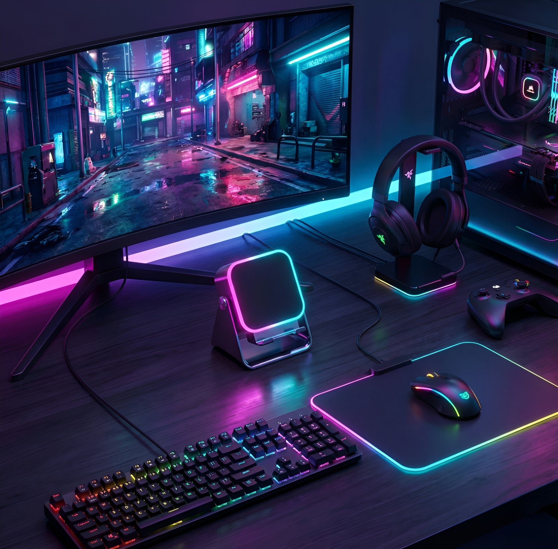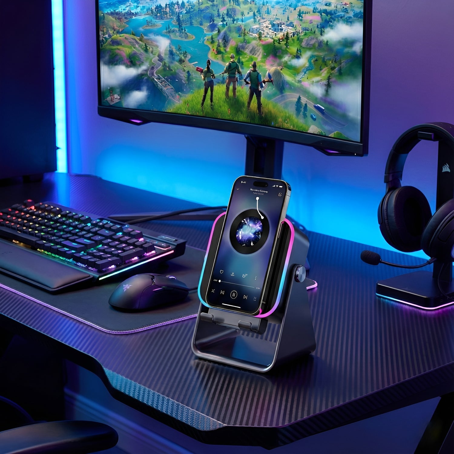 "Idealnie pasuje do mojego setupu. Podświetlenie RGB robi robotę wieczorem, nie razi w oczy, tylko buduje klimat. No i w końcu mam porządek z kablami na biurku, bo telefon ładuje się bezprzewodowo. Polecam każdemu graczowi."