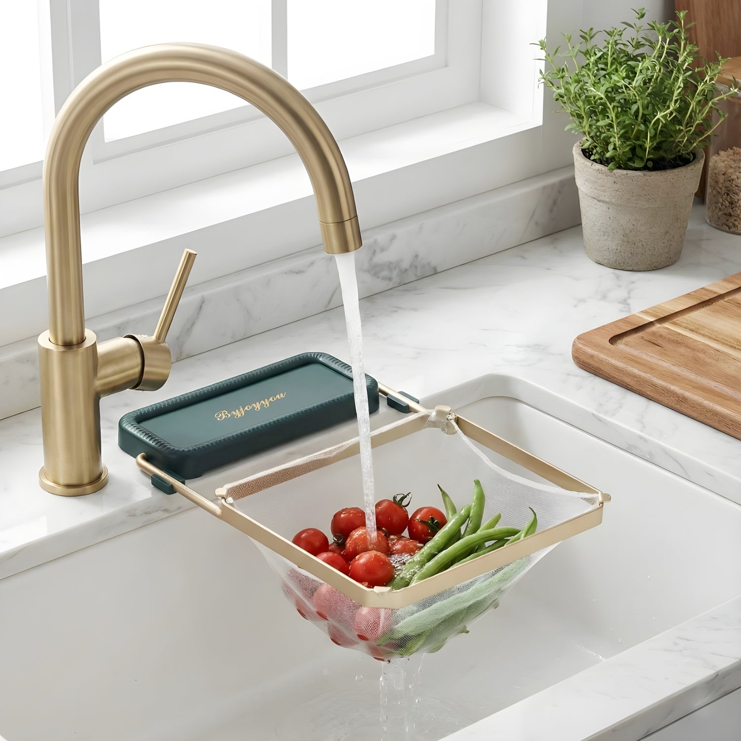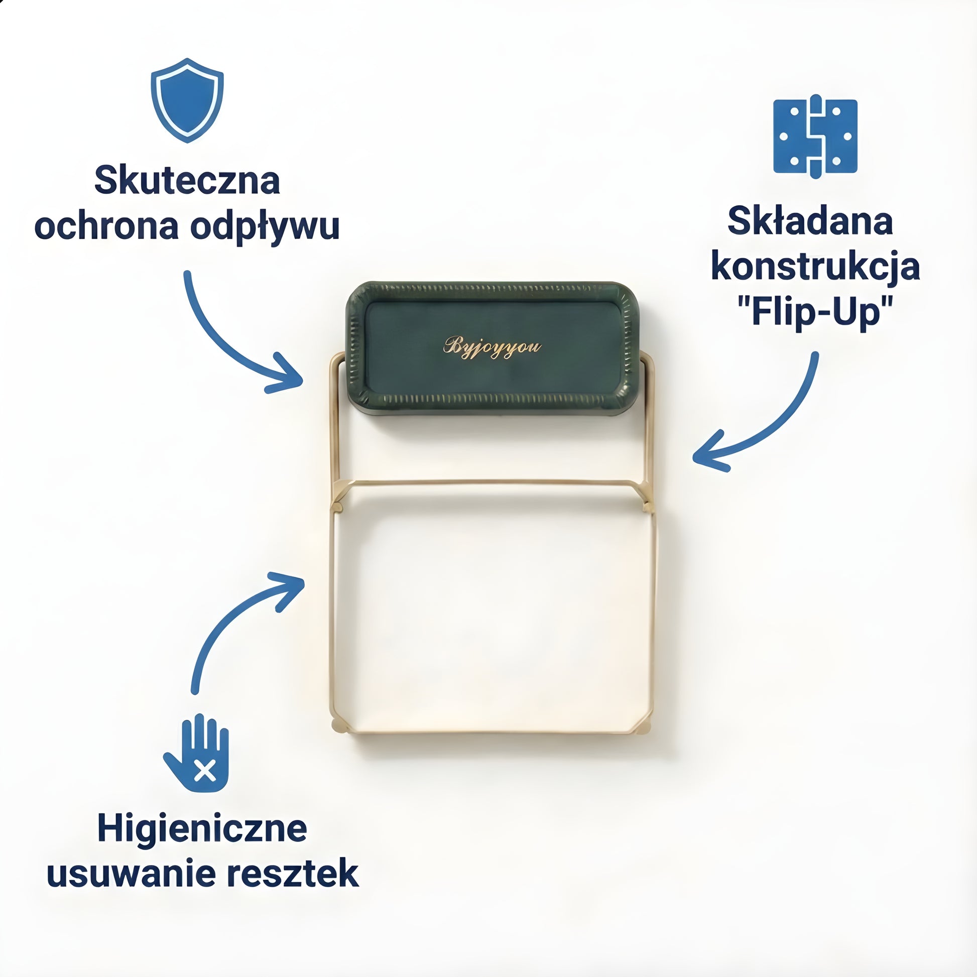 Strain Flow to nie tylko filtr – to Twój nowy organizer 2w1. Służy jako przewiewna półka na gąbki, które w końcu przestaną gnić na blacie.