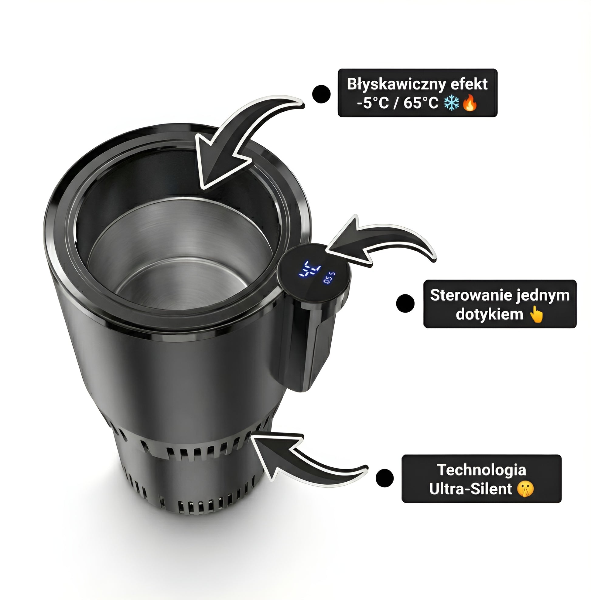 TempMate aktywnie chroni Twój napój w każdych warunkach, osiągając imponujący zakres temperatur: od lodowatych -5°C aż do gorących 65°C.