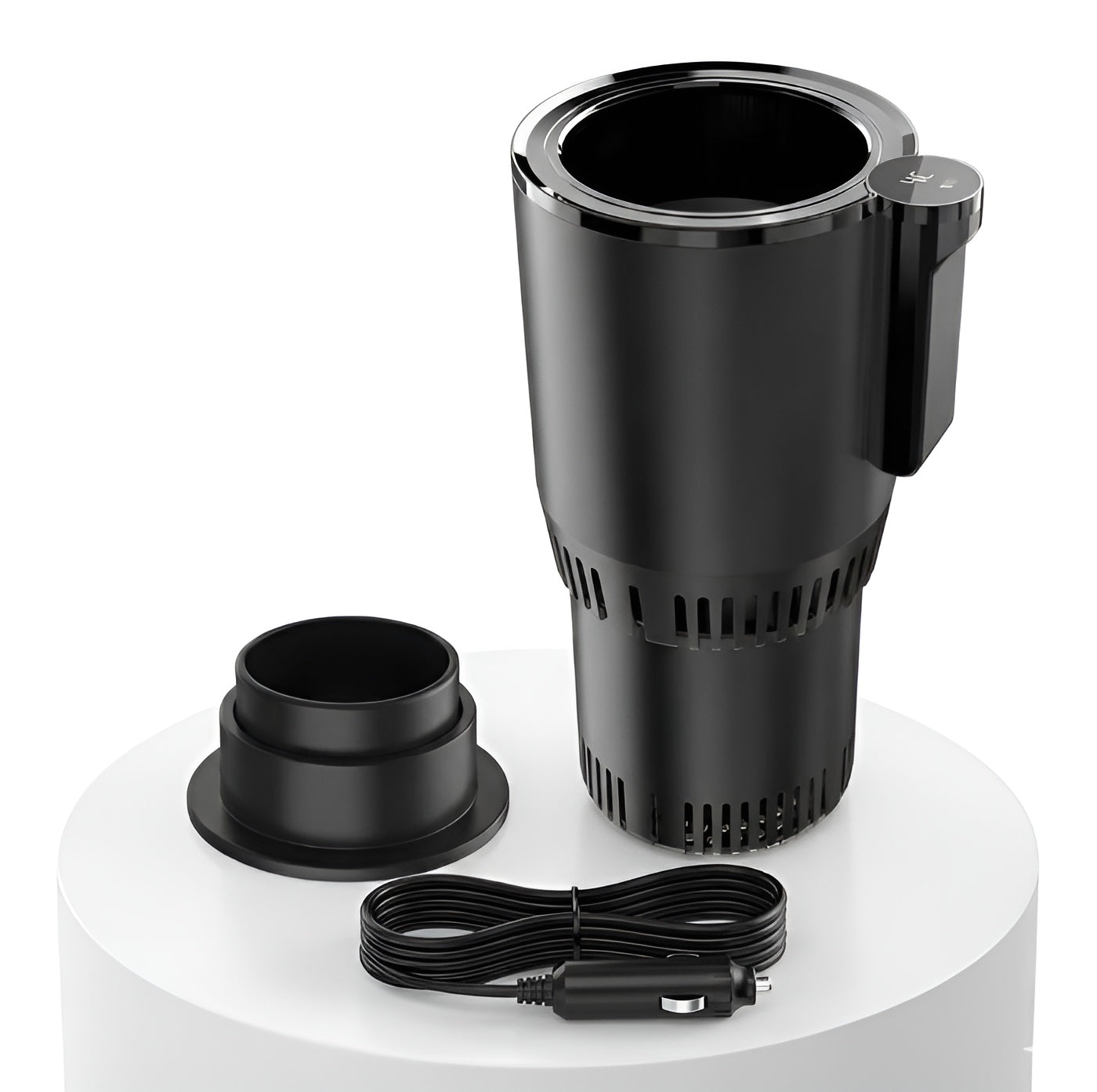 Martwisz się, że masz za głęboki uchwyt w aucie? Bez obaw. W zestawie otrzymujesz specjalną podstawkę dystansową, dzięki której urządzenie stabilnie pasuje nawet do nietypowych, głębokich otworów na kubki.